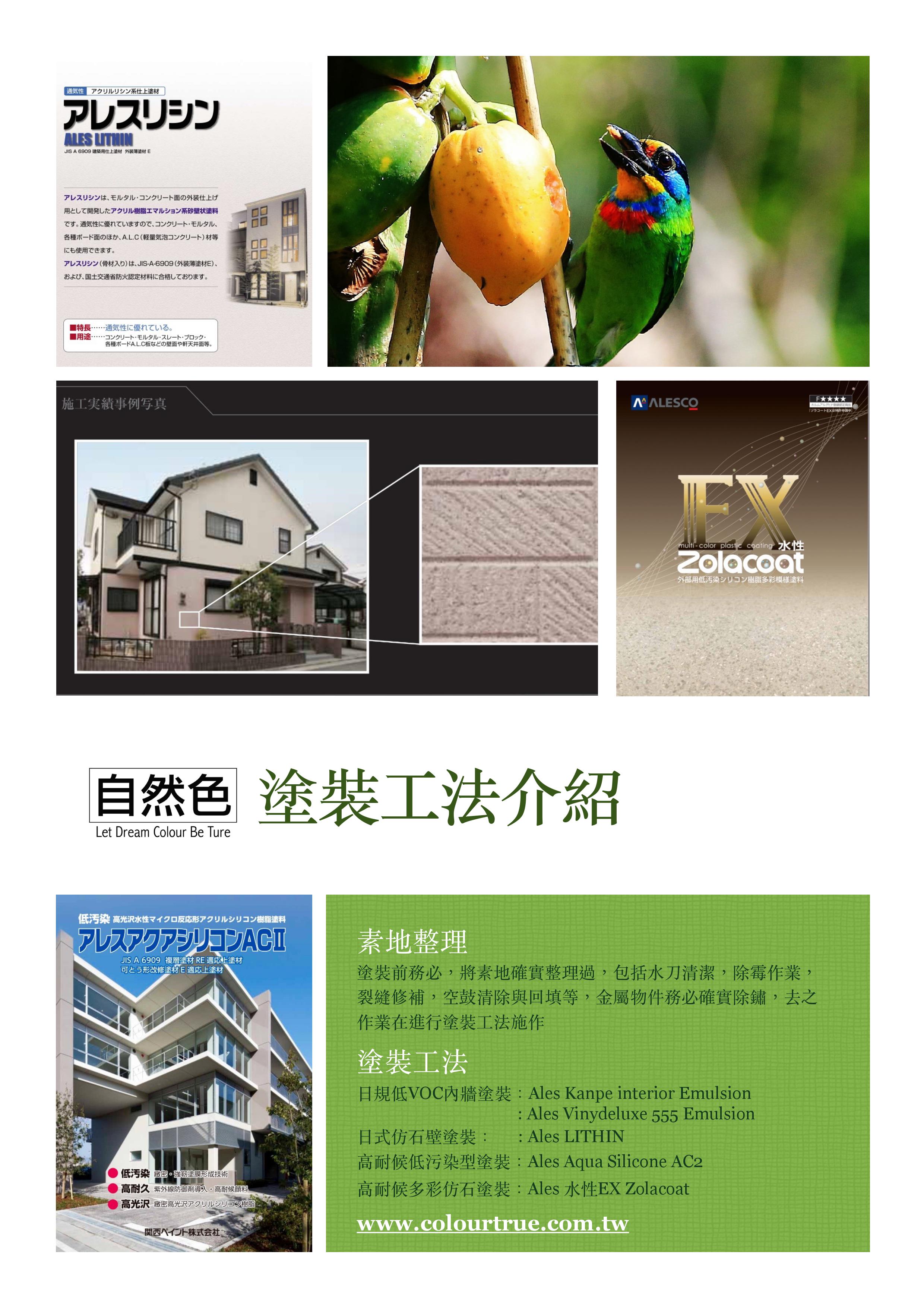 | 素地 | 底塗 | 中塗 | 飾面 | 面塗 | 彈性 | 高耐候 | 低汙染 | 吸水防止 | 隔熱防結露 |